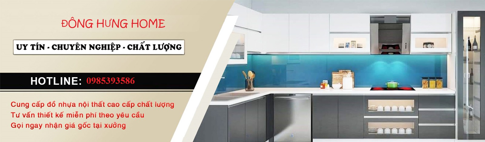 ĐÔNG HƯNG HOME là công ty chuyên tư vấn, Thiết Kế, Sản xuất và Thi công các hạng mục sản phẩm nội thất nhựa như: Tủ bếp nhựa, Tủ quần áo nhựa, Giường nhựa, Bàn học, Bàn phấn, Quầy, Kệ,... tại Hưng Yên, Hải Phòng và các tỉnh miền Bắc. ĐÔNG HƯNG HOME luôn đi đầu về kiểu dáng, chất lượng mang lại cho quý khách chất lượng dịch vụ tốt.